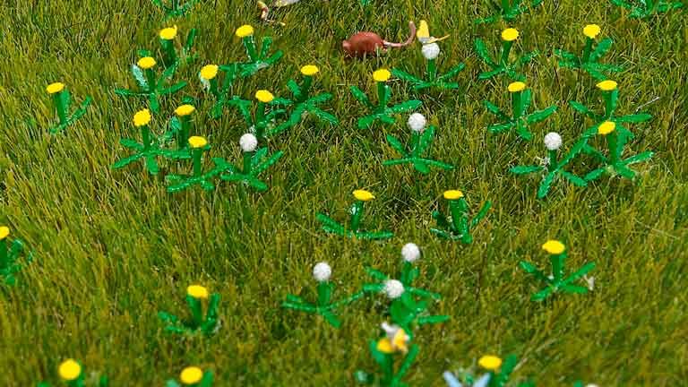 Набор из 60 цветущих растений одуванчика и 60 пустельговых цветов. Включает травянистую зону (около 148 х 105 мм) для создания небольшой лужайки с одуванчиками. Растения одуванчика также можно высаживать поодиночке в зарослях подорожника, вдоль стен и т. д. Для "оживления" в набор входят мелкие животные (бабочки, лягушки, крысы, насекомые и т. д.), которые можно раскрашивать самостоятельно.