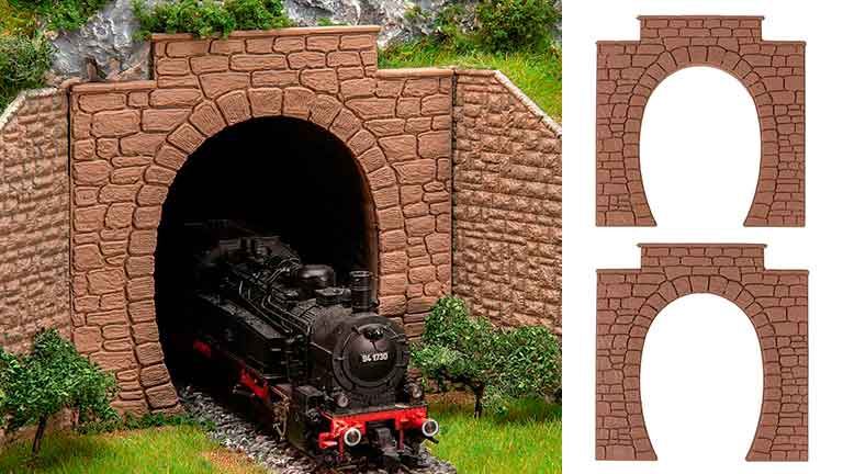 Модельный набор «Порталы тоннеля однопутные для паровозов (2 арки)» из цветного пластика для самостоятельной сборки рекомендуется для железнодорожных макетов типоразмера Н0 (1:87) и диорам в масштабе 1/87. Окраска модели не требуется. Клей в набор не входит.