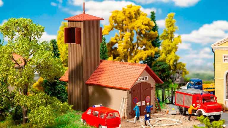 Коллекционный набор «Сельское пожарное депо» из цветного пластика для самостоятельной сборки рекомендуется для диорам в масштабе 1/87 и железнодорожных макетов типоразмера Н0 (1:87). Размер: ~158 x 106 x 140 мм. Окраска модели не требуется.