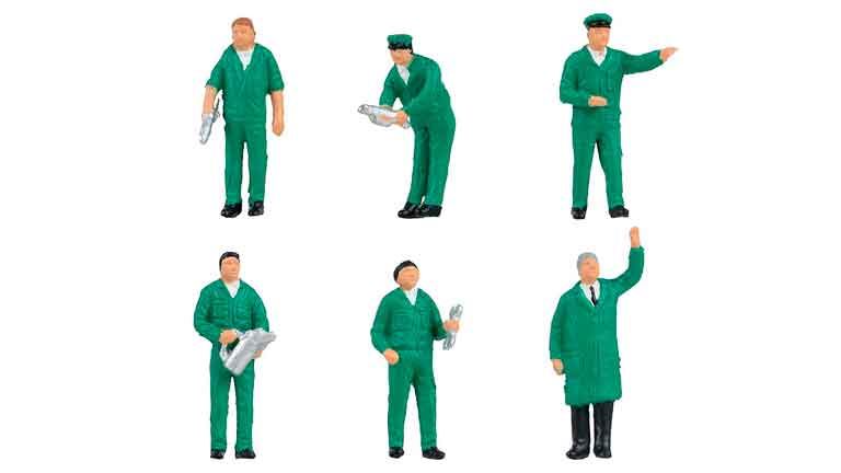 Масштабный модельный набор из 6 окрашенных фигурок «Персонал заправки «ВР» из пластика рекомендуется для диорам в масштабе 1/87 и железнодорожных макетов типоразмера Н0 (1:87). Окраска фигур не требуется (цвет, ассортимент и дизайн может отличаться от представленного на иллюстрации). Для установки фигурок рекомендуется использовать термоклей.