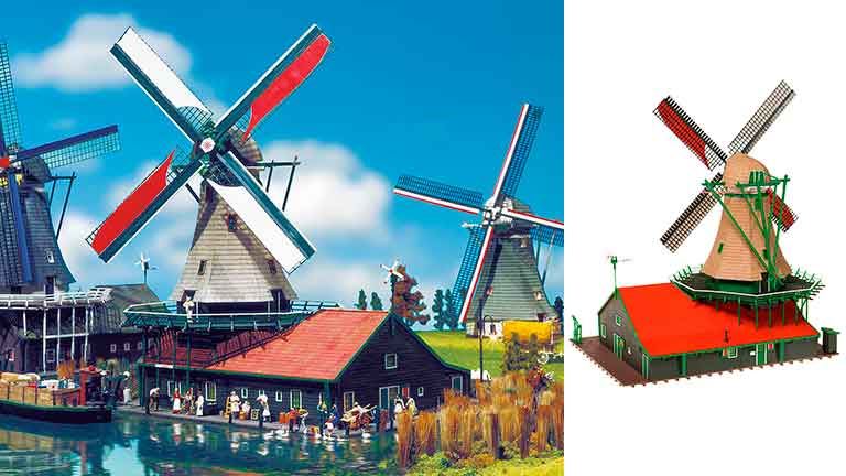 Коллекционный набор «Ветряная мельница» из цветного пластика для самостоятельной сборки рекомендуется для диорам в масштабе 1/87 и железнодорожных макетов типоразмера Н0 (1:87). Размер: ~255 x 180 x 330 мм. Окраска модели не требуется.