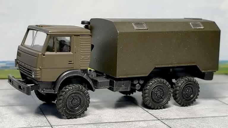 Коллекционная модель «КУНГ-К4320 (тип 2) на базе автомобиля КабАЗ» из пластика рекомендуется для диорам в масштабе 1/87 и железнодорожных макетов типоразмера Н0 (1:87). Окраска модели не требуется.